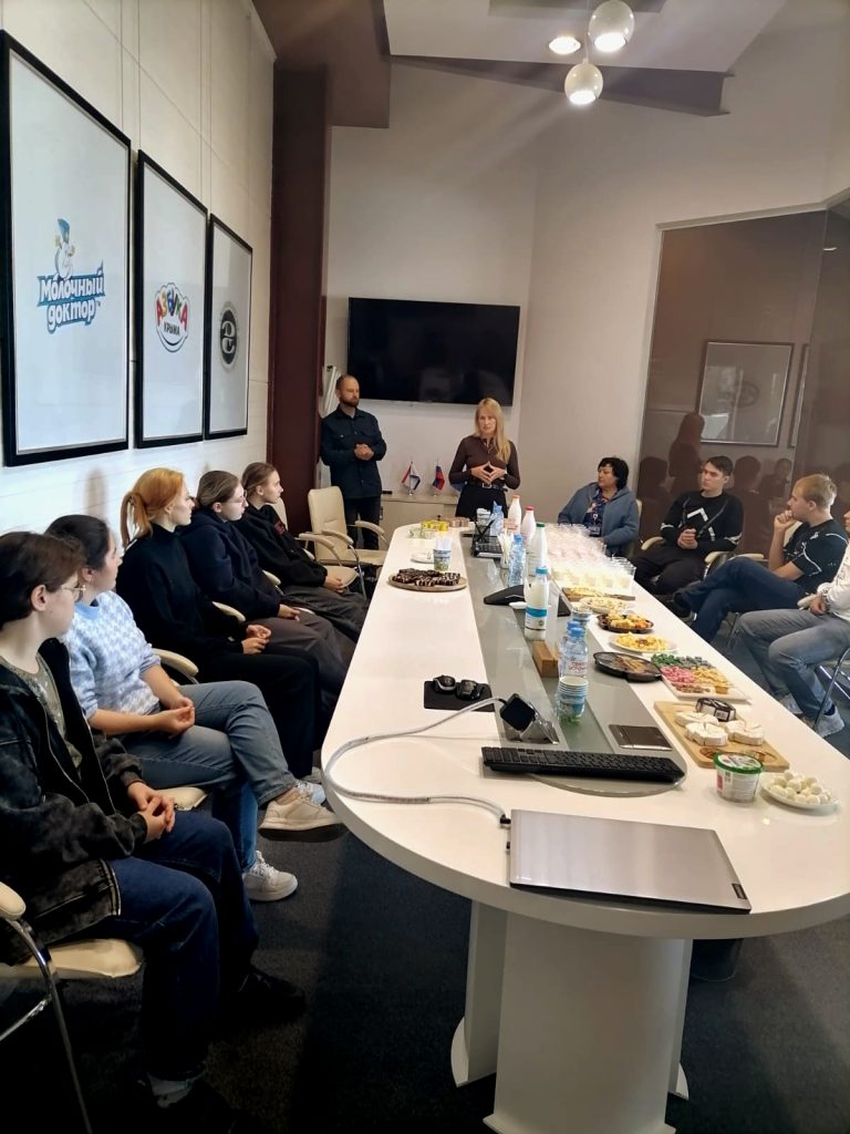 Начальник производства завода Селим Меметов провел насыщенную экскурсию по всем цехам предприятия — от приемки молока до склада с готовой продукцией. Студенты с интересом знакомились с технологическими тонкостями производства и воочию увидели всю цепочку технологических процессов производства широкого ассортимента молочных продуктов: мягких, полутвердых и твердых сыров, жидких кисломолочных продуктов, творога и творожных изделий, масла сливочного и молока.